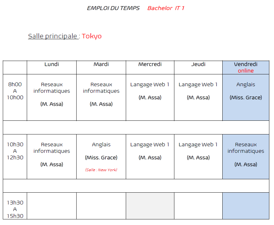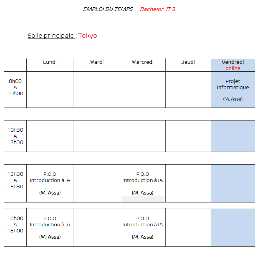 Disponible, mais pas affiché sur la page de coursNon publié aux étudiantsEMPLOI DU TEMPS 2025-2026 Bachelor IT1 (Session 2)